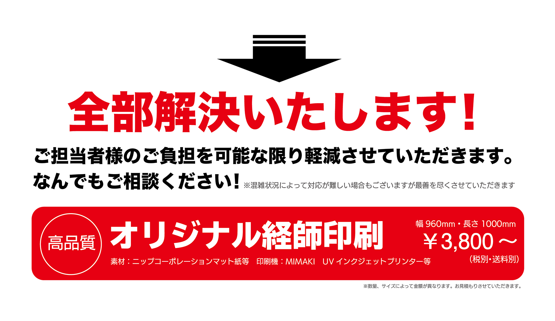 展示会、イベントブースの装飾に使用される出力経師(壁紙)の印刷サービスを開始いたしました。完全データ入稿でもデザインからでも、どちらでも対応可能です。お急ぎ大歓迎!是非一度お見積もりさせてください。喜んでいただけるように精一杯頑張らせていただきます。